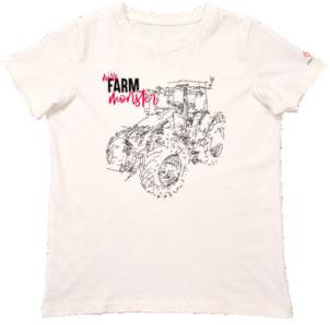 T-shirt bianca a girocollo. Il logo Massey Ferguson è stampato su una striscia nera al centro del petto e sulle maniche.