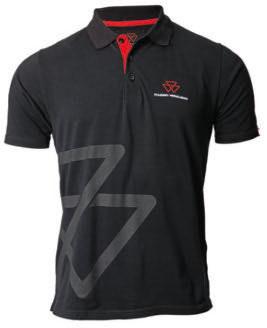 Black polo shirt with the new Massey Ferguson logo on the front.