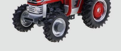 The MF 188, manufactured between 1972 and 1976, is a 4-cylinder tractor ideally suited to medium and large farm conditions. It has an eightspeed front and two-speed rear transmission. It also has new front tyres and a new seat! This MF188 2x4 1:32 scale model will delight the enthusiast!