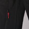 3-layer softshell for ideal protection. Technical windproof, breathable and waterproof membrane. 3-layer laminated fabric, breathable 3000 g/m² /24 h and waterproof 8000 mm. Inner layer: microfeece. Zipped closure. 2 zipped pockets on the front and 1 zipped pocket on the left sleeve. Material : 95% polyester / 5% elasthane.