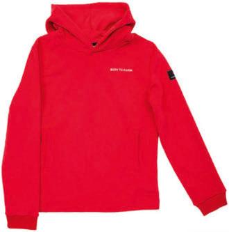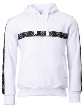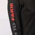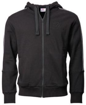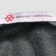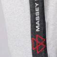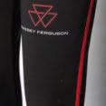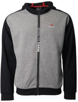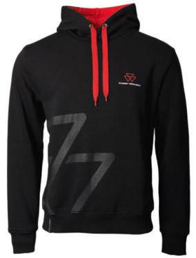 Hoodie with side pockets. The Massey Ferguson logo is printed on a black stripe down the middle of the chest and on the sleeves.