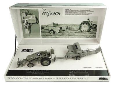 A limited edition and highly collectable model set, featuring the famous grey TEA 20 with fork implement, paired with an F12 baler.