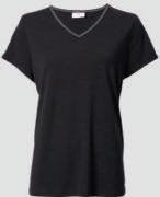 Very feminine white T-shirt with V-neck. A pretty embroidery underlines the neckline.