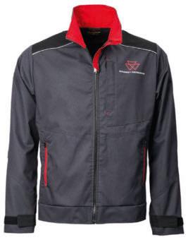 Jacket in a „Teddy“ style in grey with white stripes on the sleeve side. This jacket is fastened with silver metal snap buttons marked Massey Ferguson. X993322219