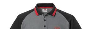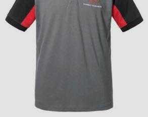 Short-sleeved polo shirt with raglan sleeves. It is comfortable and breathable yet still modern and stylish in grey, black and red.