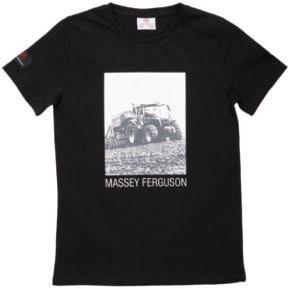 Black t-shirt with the new Massey Ferguson logo on the front.