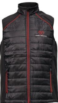 Lightweight sleeveless jacket with zipped side pockets and stand-up collar. Material: 100% polyester.