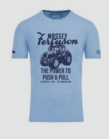 Show your support for the outstanding design and ultimate performance of Massey Ferguson with this high quality organic cotton t-shirt design from Raging Bull. The Power T-Shirt is a stylish and durable men‘s shirt made from high-quality organic cotton. Its soft, hardwearing material makes it perfect for everyday wear, while the bold contrast tractor graphic adds a touch of personality. Its fattering ft and versatile light blue colour make it a must-have for any wardrobe. Machine washable for easy maintenance and designed for longevity, this shirt is a lasting investment.