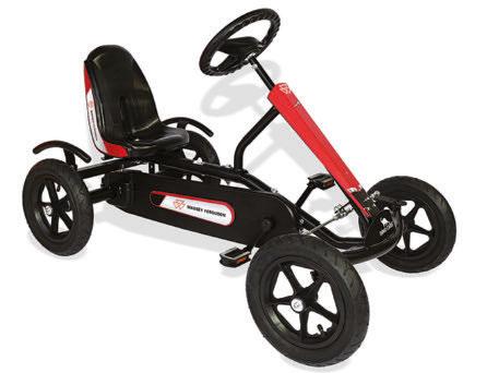 The Massey Ferguson Roadster from DINO CARS is fantastic quality its features include: Dino ZF unit which is a selectable gear shift: allowing forwards, reverse and freewheel. Sports steering wheel. Floating front axle. Hand Brake. 5-point seat adjustment Double ball joint steering, allowing accurate steering Colour coded front spoiler Tractor Style Extra Grip Off Road. Suitable for ages over 3 years.