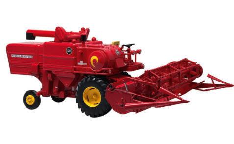 The MF 830 is a combine produced between 1983 and 1986. It is 8.71m long and has a Perkins 6 cylinder engine which gives it a top speed of 23km/h. This 1:32 scale model is faithful to the original.