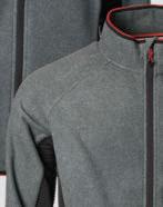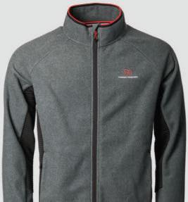 Men‘s hoodless feece jacket is made of a polyester and feece blend. It has asymmetric inserts in a contrasting fabric.