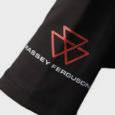 Black 100% cotton T-shirt with Massey Ferguson logo in infnite variations on the front.