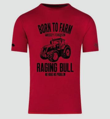 This is a limited edition collaboration with Massey Ferguson. Show your support for the outstanding design and ultimate performance of Massey Ferguson in the MF Born To Farm T-Shirt in bright red from Raging Bull. Made with high quality organic cotton for ultimate comfort and durability. This soft and hardwearing shirt features a bold farming graphic and a fattering ft for a versatile and stylish look. Show your love for farming with this bold and practical shirt. Available in sizes small to big and tall - up to 6XL.