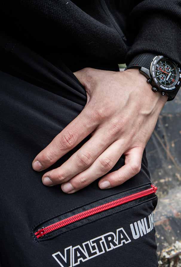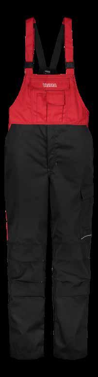 Pantaloni da lavoro, elastici, alla moda e confortevoli, con tasche laterali con cerniera, tasche anteriori ripiegate e due tasche posteriori. Sulle ginocchia sono ampi e comodi consentendo le riprese e il girovita ha un elastico e passanti per la cintura. Sono presenti dei lembi da 4 cm per allungare i pantaloni e cuciture catarifrangenti. Inoltre, la stampa del logo Valtra si trova sulla tasca anteriore. Il materiale delle parti nere dei pantaloni è estremamente elastico: 90% poliammide e 10% elastam, 240 g/ m2. Elasticità meccanica del materiale delle parti di colore grigio scuro: 100 % poliestere, 200 g/m2. Lavare a 60 gradi.
