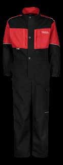 Molte tasche multiuso, tra cui tasche sul petto con cerniere, tasche portapenne e una tasca cargo con bottoni a pressione. Cerniera frontale con patta di protezione dotata di un bottone a pressione. Facile da indossare grazie alla chiusura a cerniera sulle gambe. Con polsini elasticizzati. Vita elasticizzata sul retro. Stampa bianca raffigurante un trattore sul retro. I dettagli rifrangenti rendono il capo più visibile al buio, per una maggiore sicurezza. Lavare a 60°. In materiale leggero e altamente resistente, 65% poliestere, 35% cotone.