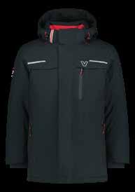 Giacca invernale con imbottitura in ovatta da 80 g. Tasche sul petto con cerniere e una tasca interna. Grandi tasche inferiori con chiusura in velcro e fodera calda all’interno. Polsini interni a coste. I polsini e l’orlo possono essere regolati con il velcro. La zip frontale è coperta da una patta protettiva. Materiale: 70% poliestere, 30% cotone, 245 g/m².