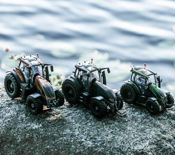 Detaljert skalamodell av Valtra Q305-traktor. Skala 1:32. Produsert av Universal Hobbies. Samlemodell, ikke egnet for barn under 14 år.