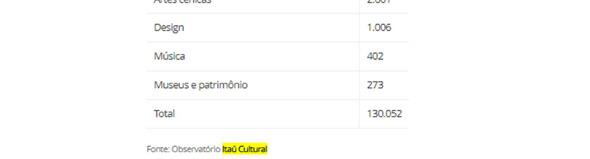 De acordo com os dados do PIB do Observatório Itaú Cultural, em 2020 existiam