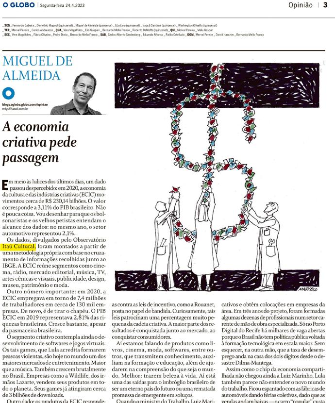 Cliente: Itaú Cultural Veículo: O Globo - RJ Data: 21/04/2023 Página: 03 Seção: Opinião