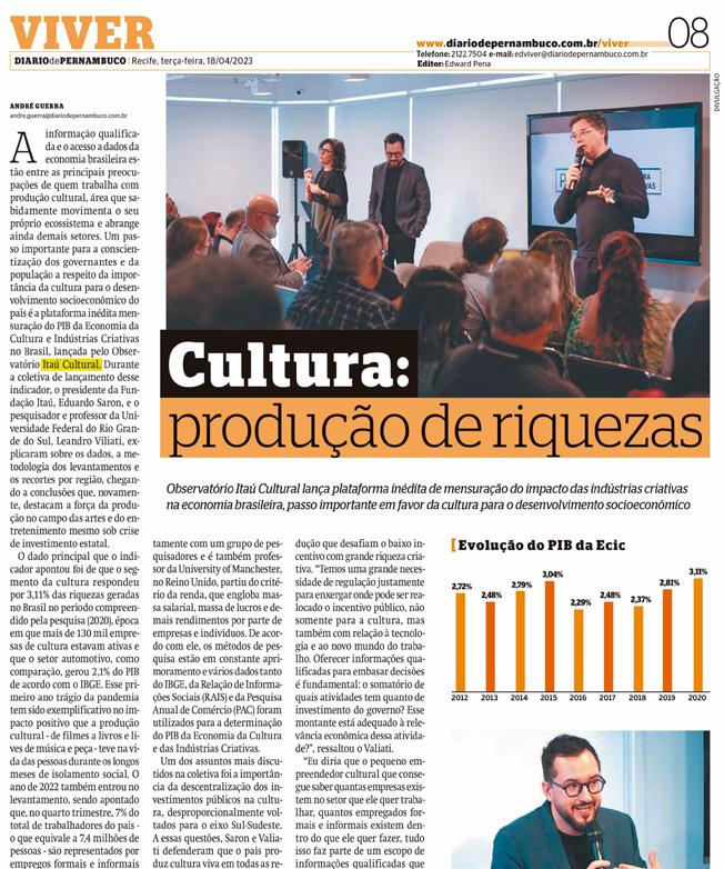 Cliente: Itaú Cultural Veículo: Diário de Pernambuco - PE Data: 18/04/2023 Página: 08 Seção: Viver
