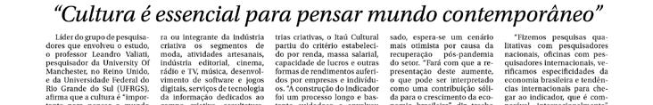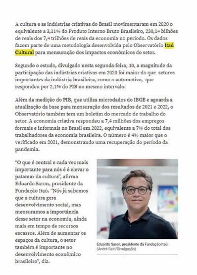 Cliente: Itaú Cultural Veículo: O Estado de S.Paulo - SP Data: 30/04/2023 Página: A3 Seção: Notas e Informações