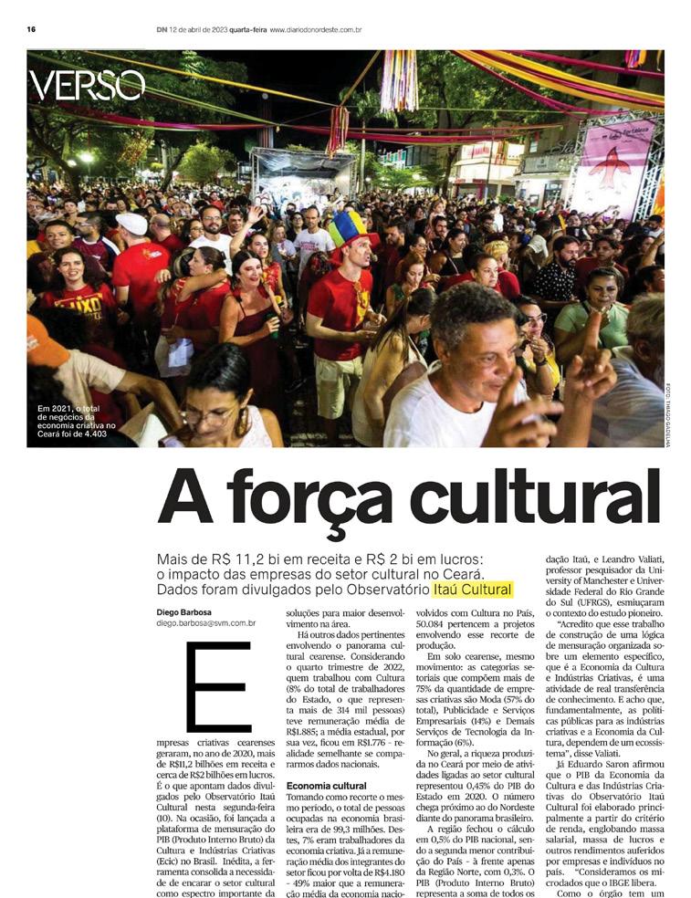 Cliente: Itaú Cultural Veículo: Diário do Nordeste - CE Data: 12/04/2023