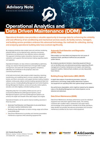 Operational Analytics now provides a valuable opportunity to leverage data for enhancing the reliability and cost efficiency of air conditioning and mechanical services assets. As facility owners, managers, and building service providers embrace this advanced technology, the methods for collecting, storing and analysing operational building data have evolved significantly.
