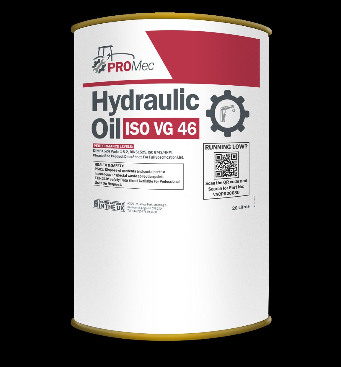 A quality mineral based hydraulic oil that provides wear, corrosion and rusting protection. PROMec Hydraulic Oil ISO VG 46 controls foam and air entrainment to ensure good hydraulic system performance. Can be used in hydraulic systems fitted to older equipment, including : off-highway vehicles, material handlers, tipper rams and jacks, etc., where a hydraulic oil of this type is required by manufacturers.