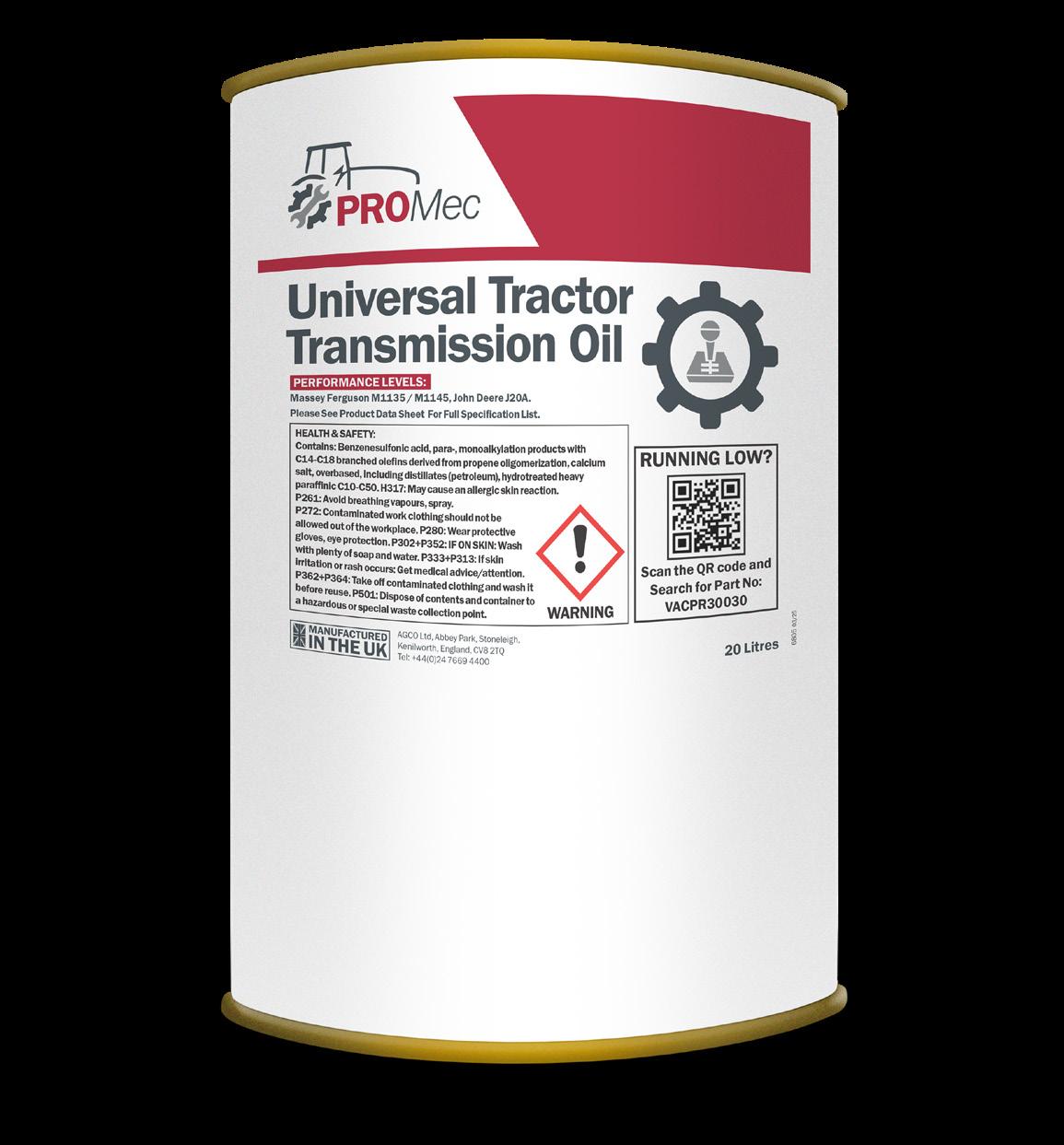 A quality mineral based universal tractor transmission oil, suited for use in combined hydraulic/transmssion systems fitted to older agricultural machinery where a universal product of this type is specified. PROMec Universal Tractor Transmission Oil will protect hydraulic and gear components, as well as oil immersed brakes, where fitted.