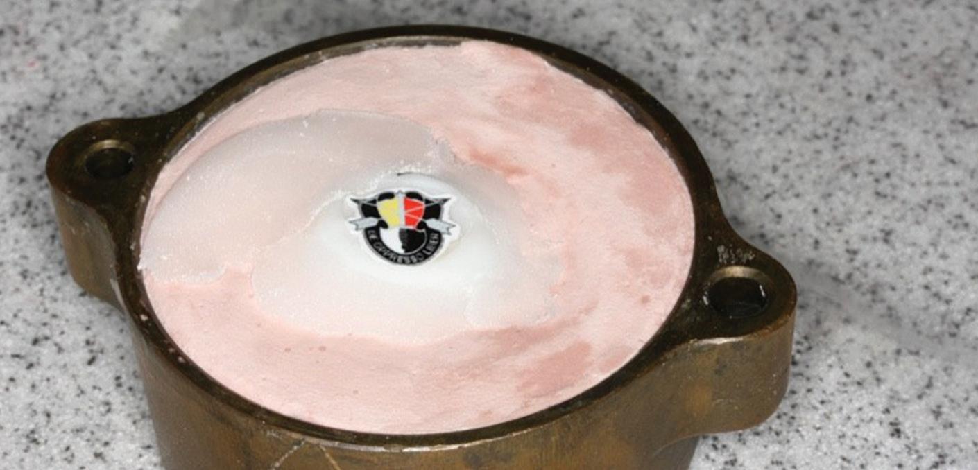 The colonel is back at the clinic for a new ocular prosthetic and is currently seated in the spacious anaplastology treatment room flooded with natural light (anaplastology is the field of medicine that deals with prosthetic rehabilitation). He tells his provider, “I know you guys can paint it to look like my other eye, but I want you to put this in it instead,” and hands over a metal lapel pin with the insignia of his current unit. Still on active duty and now a full-bird colonel, he custom orders these pins every time he’s assigned to a new unit, then calls the clinic for a new eye. When Dr. Walworth discusses extraoral prosthetic options with a patient.