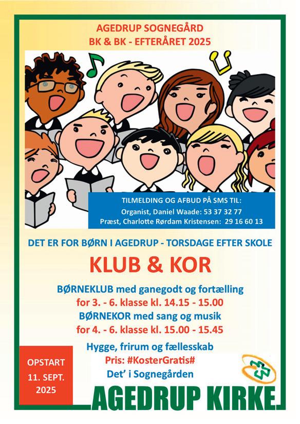’Kalenderen på bagsiden’ viser dato, tid, sted for store og små begivenheder i og omkring kirke- og sognelivet i Agedrup. Ved * er der mere udførlig omtale på kirkesiderne.