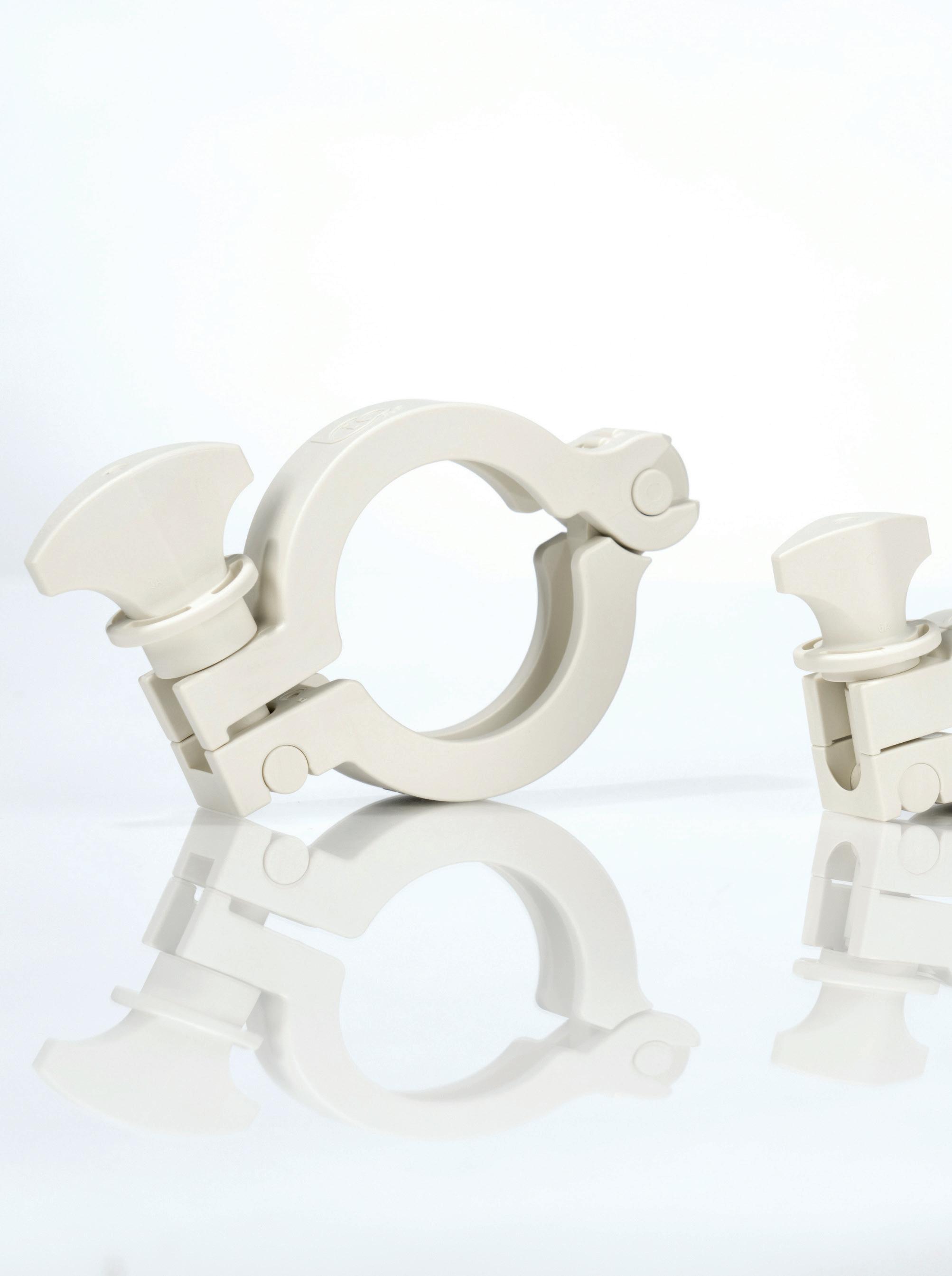 26 % sur l´ensemble du cycle de vie du produit. Le BioClamp, grâce à ses méthodes de production efficientes conçues pour l'attache robuste des raccords sanitaires et parfaitement appropriées aux tubulures indispensables jetables destinées au transfert de fluides, est proposé à des tarifs compétitifs. En outre, une charnière ergonomique de conception avancée facilite la fermeture du BioClamp et simplifie la configuration d´un process d´assemblage caractérisé par des changements rapides.