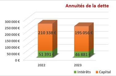 L’annuité de la dette s’élève à 241 937 € (contre 261 435 € en 2022) elle se décompose comme suit :