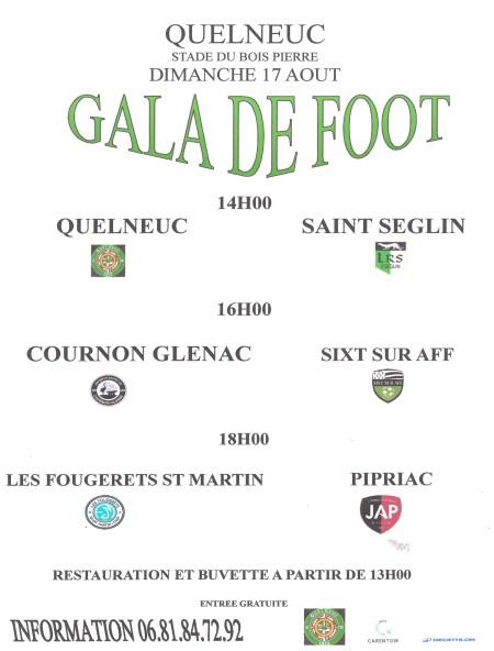 Gala de football : Dimanche 17 août à Quelneuc aura lieu un gala de football.