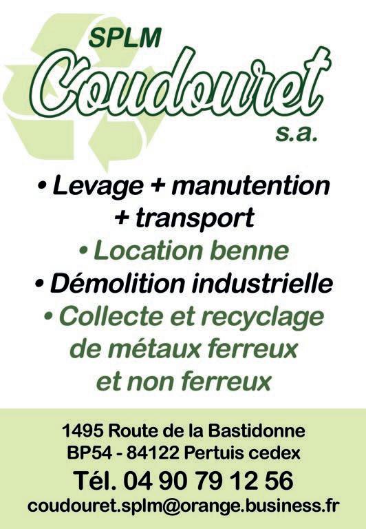 0800 801 919 POUR VOUS DÉBARASSER DE VOS ENCOMBRANTS Tél. 04 90 09 26 80 Conception & Réalisation: FRANCE RÉGIE ÉDITIONS Tél : 01 41 53 00 90 Email: info@france-regie-editions.fr Dépôt légal 2e trimestre 2022 Photos et droits réservés à la Mairie. Toute reproduction interdite sans l’accord écrit de la Mairie. Directeur de la publication: Roger Pellenc Rédaction: Service Communication Photos: Service Communication, Marcel Sempérès, associations de la ville, G. Soulet, T. Dubois. Hôtel de Ville : rue Voltaire CS 73784120 Pertuis communication@mairie-pertuis.fr
