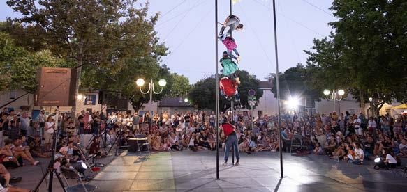 Le lendemain matin, ce fut au tour des violons, altos et violoncelles des conservatoires de Pertuis et Aix-en-Provence de déambuler entre l’Espace Georges Jouvin et l’église Saint Nicolas sous un soleil de plomb. Puis la Master Class de musique de chambre par le Quatuor Béla entrait en scène à la médiathèque, alors qu’en fin d’après-midi, un concert à l’Espace de Croze était offert par des étudiants des conservatoires de Pertuis, Aix-enProvence, Marseille et de l’Institut Supérieur d’Enseignement de la Musique. Pendant ce temps, «Les Sancho», groupe de 8 danseurs marseillais offraient un spectacle, très apprécié, de hip hop sur la place Jean Jaurès. «Germaine et Germaine», les 2 petites vieilles assises sur un banc dans la rue nous ont entrainé dans leur monde burlesque et absurde avant de terminer la soirée avec la Cie Eklabul et son spectacle «L’allumeur de réverbères», savant mélange entre comédie et spectacle feu.
