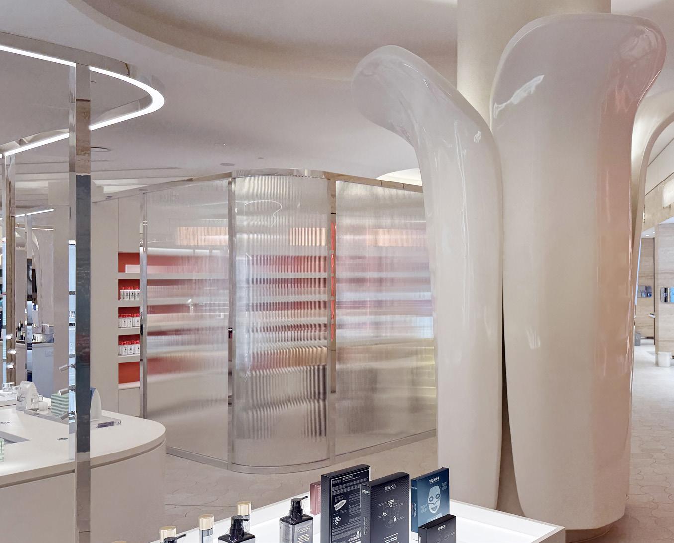 A breakthrough large-scale experiment came with the Cozey flagship in Toronto, created with LAAB and Cossette. Tasked with building a space that embodies the brand born online. Studio Officiel answered with a storefront staged as a monumental textile wave suspended between virtual and real. Here one sees what drives the duo: a scenography of the everyday that transcends commercial function to explore theatricality, fluidity, and sensation.