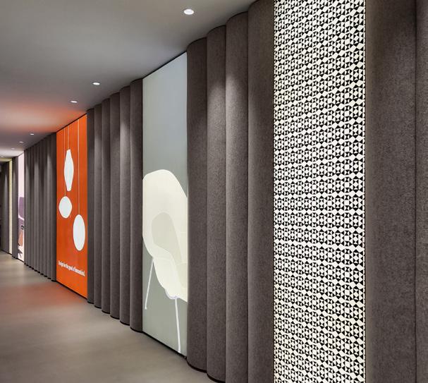 motion. Bold illuminated numbers on theater doors and playful stair graphics enhance orientation and engagement, while tickets indicate the ideal entry route in advance. Wrapped in luminous marble, the Center welcomes visitors into a “living room” for Lower Manhattan—a place to gather, dine, and experience art—ensuring every visit feels seamless, and distinctly its own.
