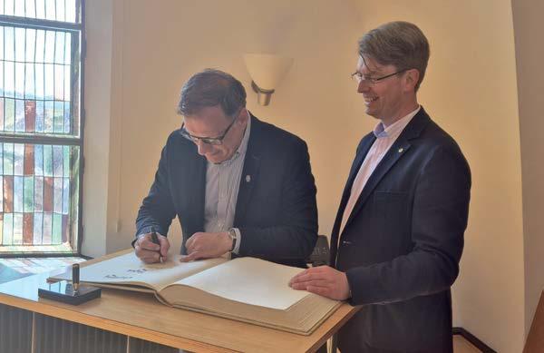 składają swoje podpisy honorowi goście Hildesheim, m.in. kanclerz Niemiec, Olaf Scholz. Ponadto burmistrzowie obu miast omawiali kierunki rozwoju swoich miast, głównie w kierunku ekologii i ochrony klimatu.