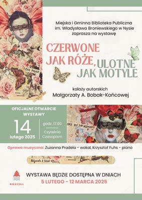 W walentynkowy wieczór, 14 lutego, w Czytelni Czasopism odbył się wyjątkowy wernisaż wystawy „Czerwone jak róże, ulotne jak motyle” autorstwa Małgorzaty A. Bobak-Końcowej.