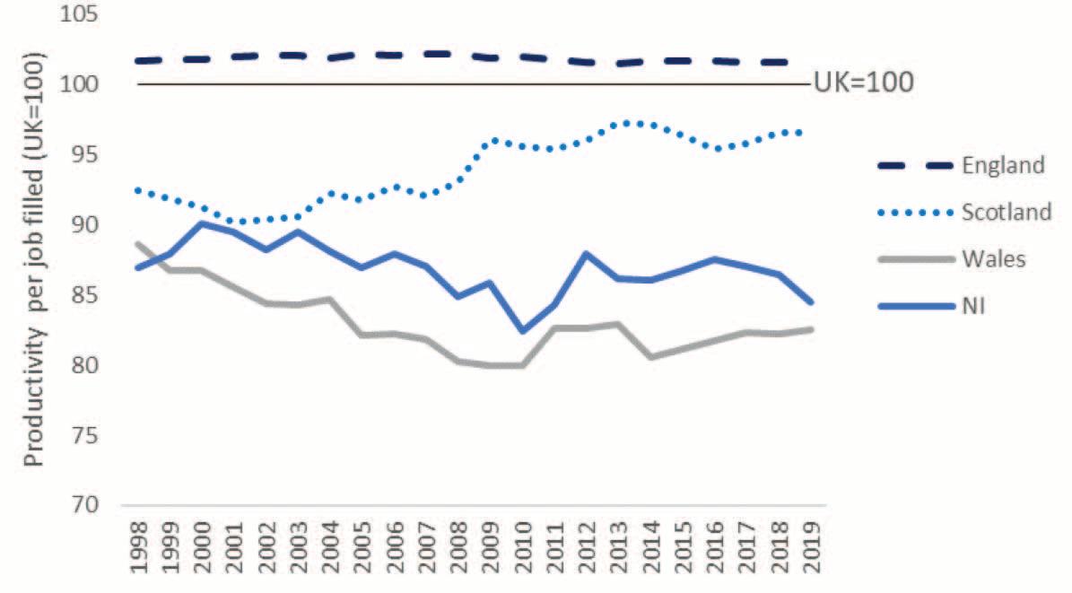 In productivity, Northern Ireland is a UK laggard, some 17 per cent below the UK average. The productivity gap between the Republic of Ireland and Northern Ireland was recently estimated at around 40 per cent.