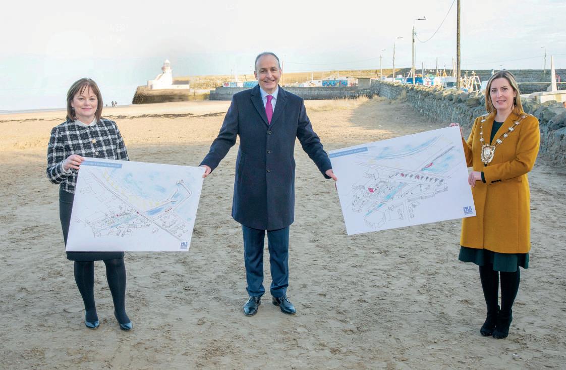 Taoiseach Micheál Martin TD pictured with Fingal County Council Chief Executive AnnMarie Farrelly and Mayor of Fingal Councillor Seána Ó Rodaigh during a recent visit to Balbriggan where he viewed plans and sites for a €50 million regeneration project.