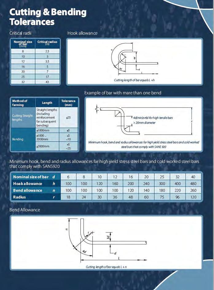All cutting and bending operations comply with the South African standard SANS 282:2011 Edition 6, using approved bending schedules and shape codes to ensure precision and consistency.