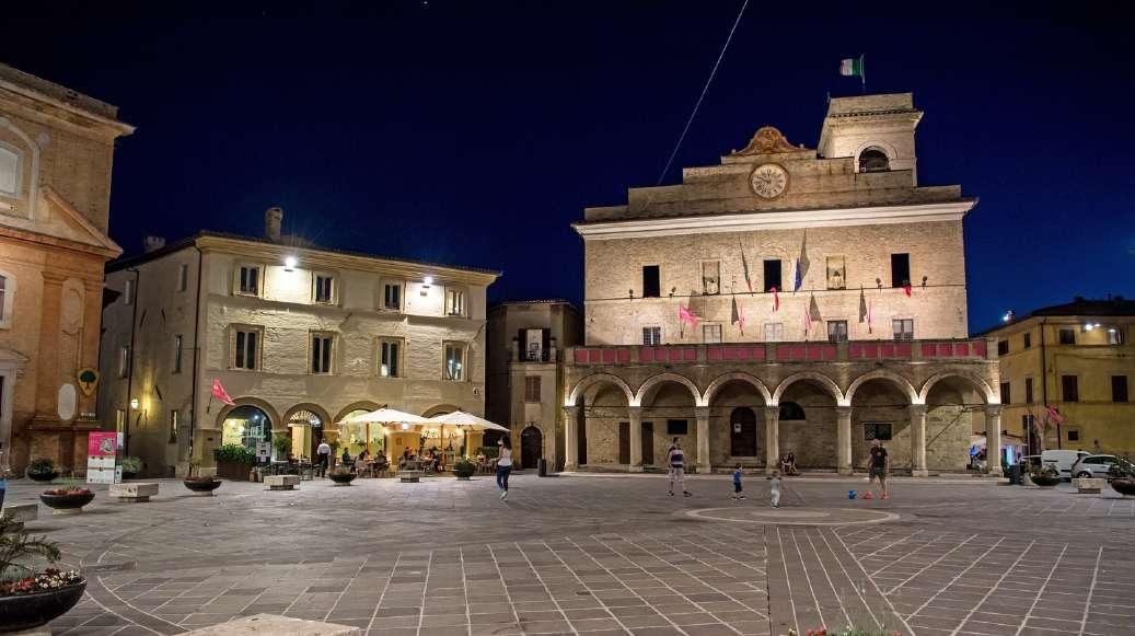 Montefalco, centro-storico. Illuminazione della piazza del comune