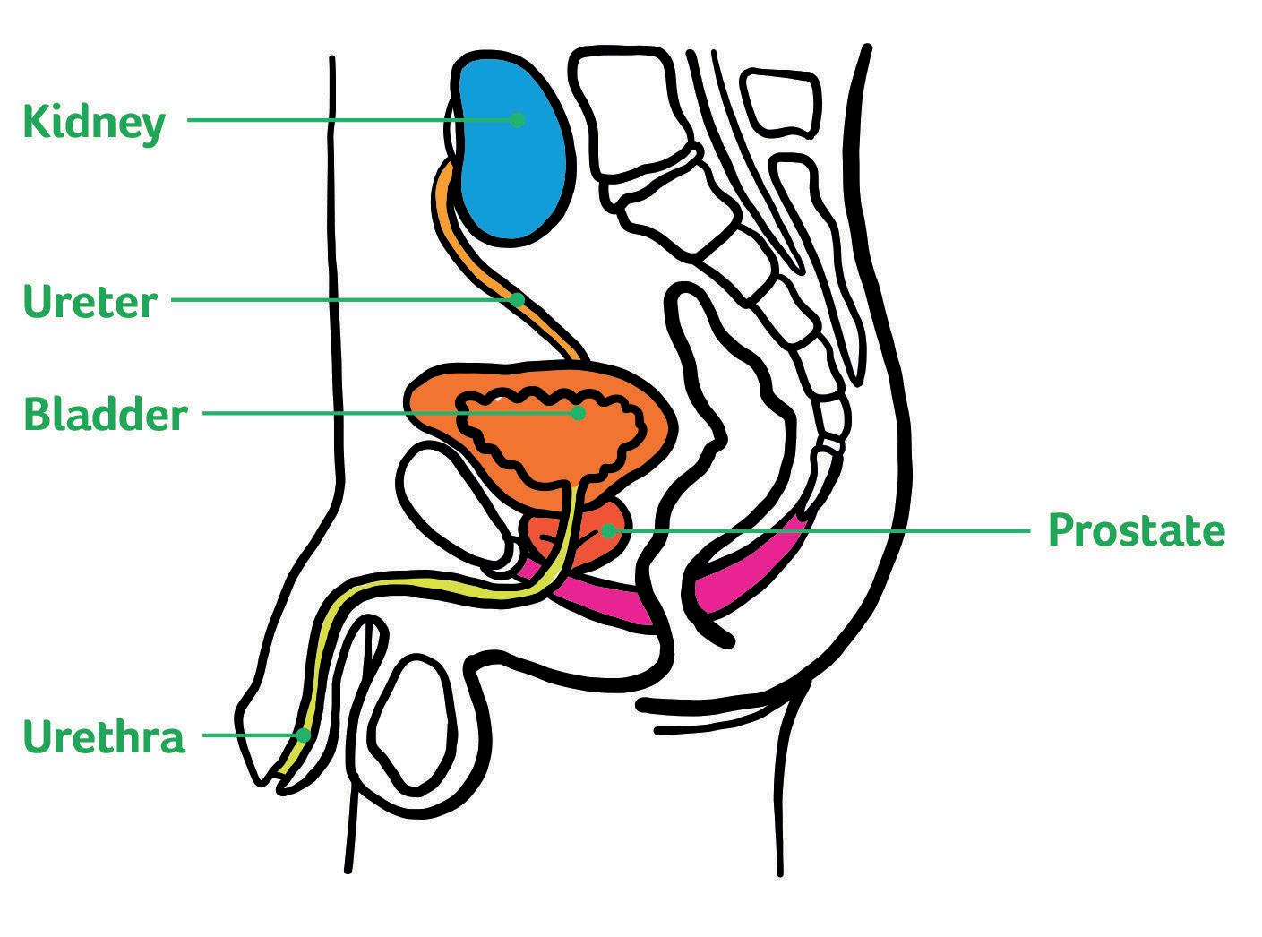 Urine is made in your kidneys and travels to the bladder down tubes called ureters. As the bladder fills up it expands like a balloon. When it is about half full, you will start to feel the need to pee.