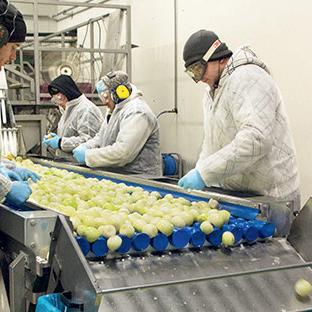 Commerciële voedselverwerking van versgesneden salades, bladgroenten, selderij, prei, wortelen, komkommers en fruit.