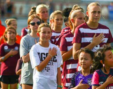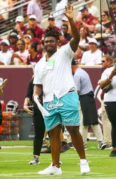 The fall is upon us and Aggie sports are in full swing. In this issue, we look back at the historic run that Sam Bennett made in the US Amateur Tournament, as the talented Aggie men’s golfer became the #1 amateur in the country. I also got to be one of the privileged Aggies welcomed at the premiere of “Standing Room Only –The Legend of the 12th Man” movie that took place in Rudder Auditorium last month. Check out my review of the documentary in this issue. It was great to sit down with Aggie Soccer player, Quinn Cornog, and find out about her path to Texas A&M. Speaking of the soccer team, it looks like Coach G has got this year’s team firing on all cylinders as they enter conference play. After a tough start to the season, Coach Bird has gotten our volleyball team on a nice winning streak too. On the gridiron, the Aggies took care of Sam Houston State and then stumbled against Appalachian Sate the following weekend. Our team is stacked with a lot of young talent and I’m confident that Jimbo Fisher will coach ‘em up to have a great season. For those fortunate enough to come back to College Station this fall to take in a game, be sure and check out the new Aggie Park. I was able to cruise around and take some pictures before it officially opened and you can see those shots in this issue. Finally, on a personal note, this has been an amazing year for me. My middle son Tyler ’20 and his wife Macailey had a baby boy in January and he has already been to his first Aggie baseball game. Jaxson picked a good one to start with as he helped the Aggies beat TU in the College World Series. My oldest son Dan ’17 and his wife Meaghan blessed us with a granddaughter named Hannah, in April. As you can see from her picture below, she already looks amazing in maroon and white. Both grandma and grandpa are very proud of our two grandbabies and they love to hear me sing the Spirit of Aggieland as I rock them to sleep.