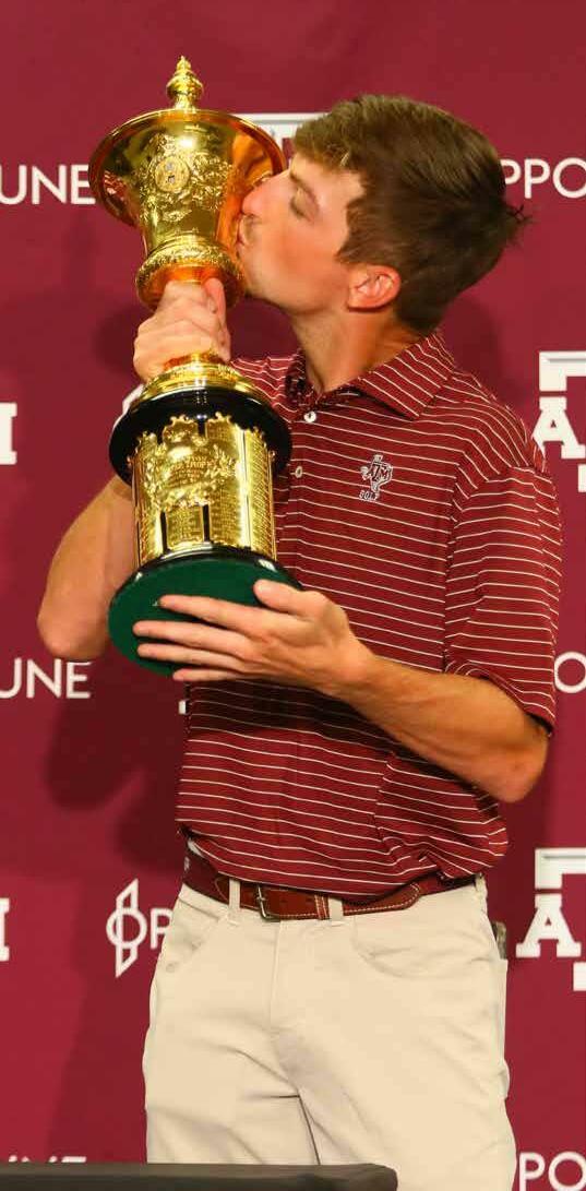 Fightin’ Texas Aggie senior, Sam Bennett, from Madisonville, Texas, ranked third best amateur golfer in the world, played nine rounds of golf in seven days to win the 122nd US Amateur Championship. 312 players teed it up on opening day and once the week was finished, Bennett was the last man standing. While his head coach, Brian Kortan, served as his caddie, the two navigated through the talent filled tournament together with one goal in mind, to bring the national title home to Aggieland.