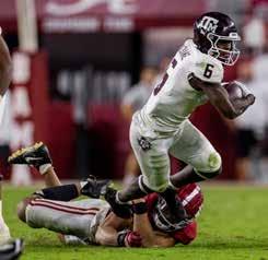 Before the United States Hockey team took the ice against the Soviet Union in Lake Placid, New York for the 1980 Olympic Games, coach Herb Brooks told his team “Great moments are born from great opportunities.” On the Saturday after Thanksgiving, the Aggies had a great opportunity. Their arch-rival from Baton Rouge came into the game as the #5 team in the CFP and they had already secured the SEC West Division title and a birth in the upcoming SEC Championship. They were two wins away from securing a spot in the final four teams and a chance to play for the National Championship. The 4-7 Aggies hadn’t played a complete game all year. They had gone through three different starting quarterbacks and a slew of injuries and suspended players that left them as a shadow of the team they expected to have at the beginning of the year. Based on the eleven previous games, very few people expected them to win as the red-hot Tigers rolled into Aggieland. In front of a full-capacity crowd, the Aggies took the field ready to shock the nation. The defense got us off to a great start by forcing the Tigers to punt their first possession. The offense took the field and Conner Weigman led them on a 15-play drive that covered 90 yards and culminated in a tenyard touchdown run by Devon Achane. LSU would answer with a long drive of their own that finished with a four-yard touchdown run by John Emery Jr. The teams would trade field goals in the second quarter before the Aggies went back on top with a 72yard drive of their own. On third and goal from the three, Weigman found a wide-open Donovan Green in the end zone. The two connected for a touchdown and a sevenpoint lead at the half. In the third quarter, the Aggie offense went three and out with the Tigers making things even from a 71-yard scoring drive. When the Aggies didn’t answer on their next possession, the momentum of the game seemed to move to the Tigers. But on a third and one, LSU quarterback Jayden Daniels scrambled to the left and was strip-sacked by Edgerrin Cooper. Senior, Demani Richardson saw the ball on the ground, scooped it up, running it 27 yards for an Aggie touchdown and a 24-17 lead. It was the play of the game and the Aggies would not look back as they added two more touchdowns in the fourth quarter. An amazing 21-yard one-handed catch by Moose Muhammad III and a ten-yard scoring run by Devon Achane put the Aggies at 38 points. The Tigers would add one more score before time ran out and the Aggies triumphed 38-23. As the clock ran down, the 12th Man rushed the field and celebrated the big win. It wasn’t a miracle like the Americans had over the Soviets in 1980, but for Aggies everywhere it was a great win that we can celebrate until the 2023 season begins. The Aggies showed great heart and finally put together four quarters of football. This team is very young but the difficult times we went through this year and the experience we gained will be so beneficial as we head into next season.