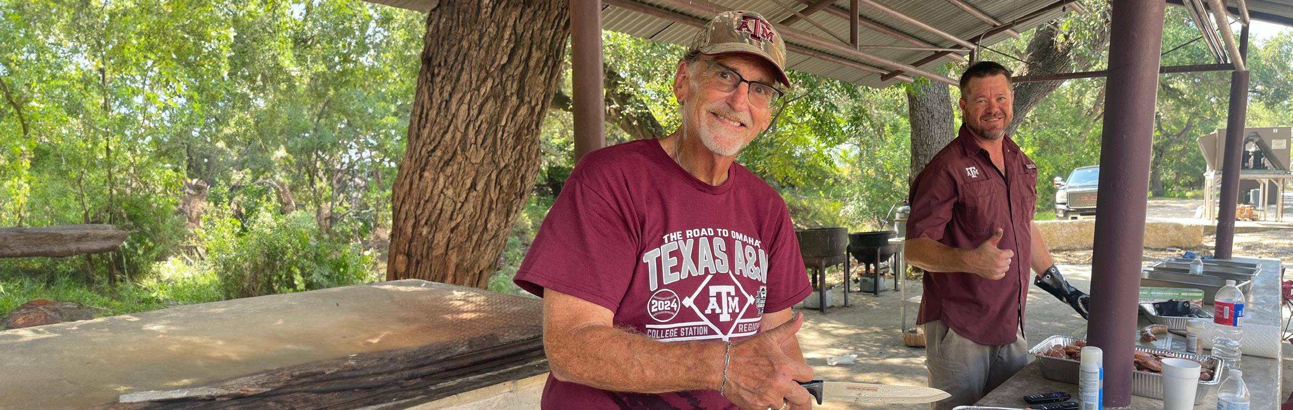Our Aggie Family BBQ was a success even before it began! Our Texas A&M College World Seriescontending baseball team beat Oregon 10-6 earlier in the day. The barbecue pit and kitchen crews watched their victory while preparing for the Family BBQ.